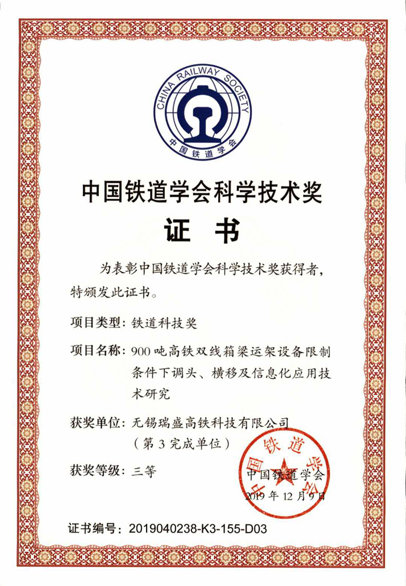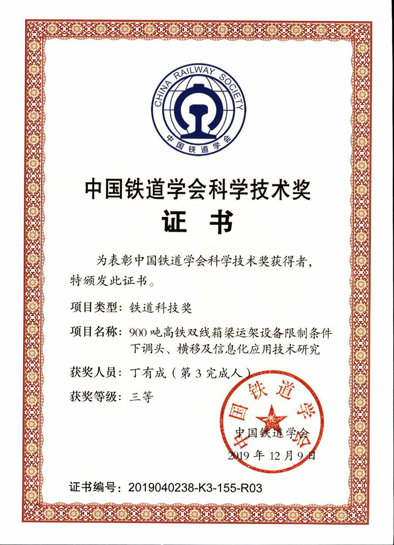 中國(guó)鐵道學(xué)會(huì)科學(xué)技術(shù)獎(jiǎng)勵(lì)證書(shū)